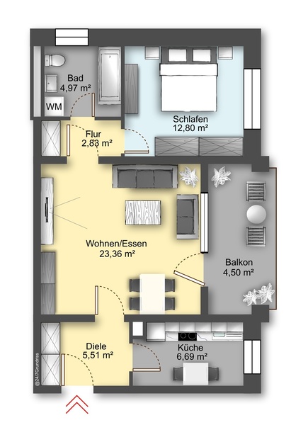 Ein Tiefgaragenstellplatz gehört zur Wohnung.