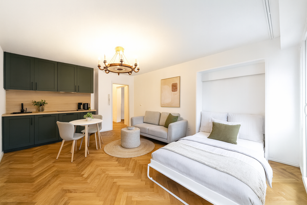 Aktuell als 2-Zimmer-Einheit genutzt, lässt sich durch das Zumauern der Verbindungstür problemlos wieder in zwei separate Apartments zurückführen. Beide eignen sich – möbliert oder unmöbliert – hervorragend zur Vermietung.