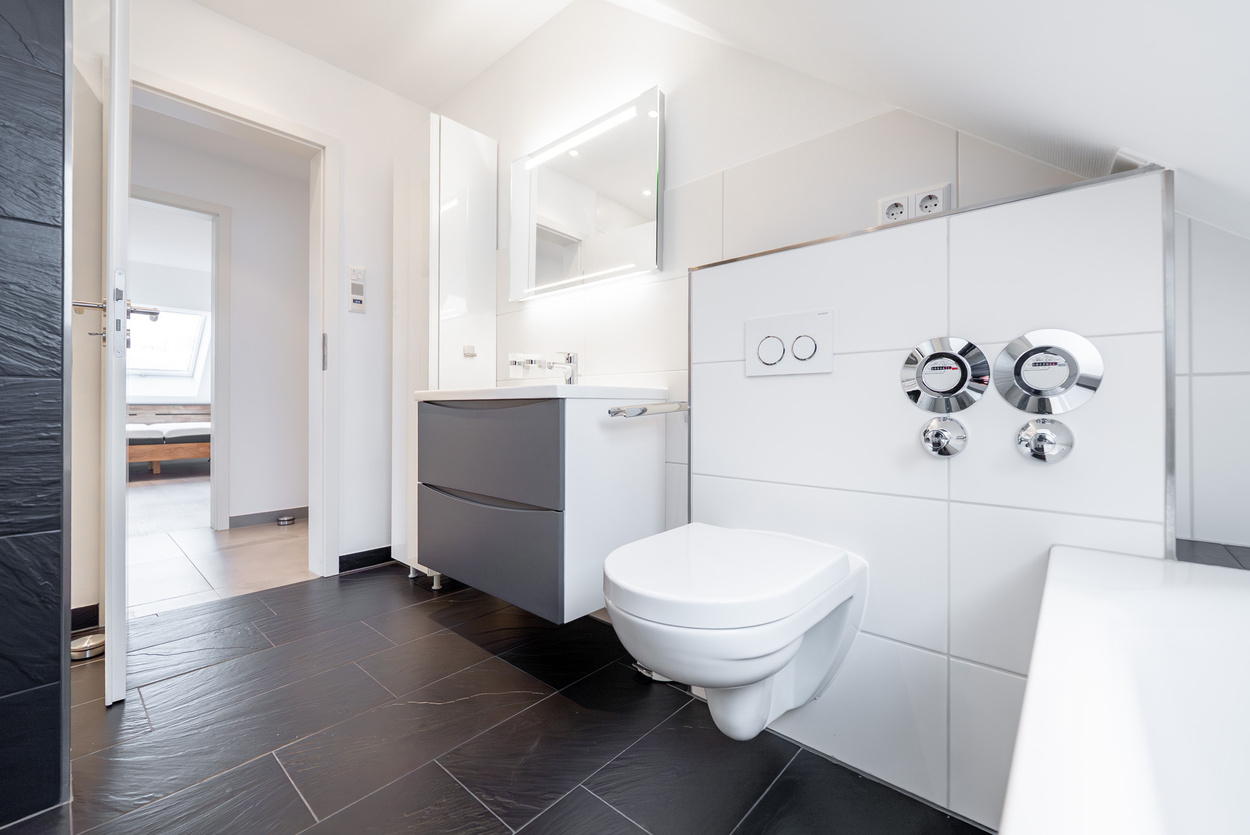 Modernes Tageslichtbad (neu) mit Dusche und Badewanne