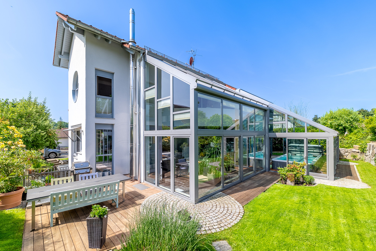 Exklusives Wohnerlebnis: Einfamilienhaus mit Einliegerwohnung und beeindruckendem Wintergarten mit Pool!