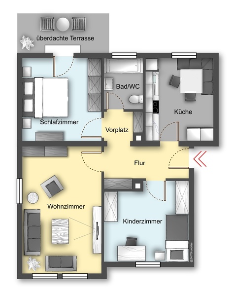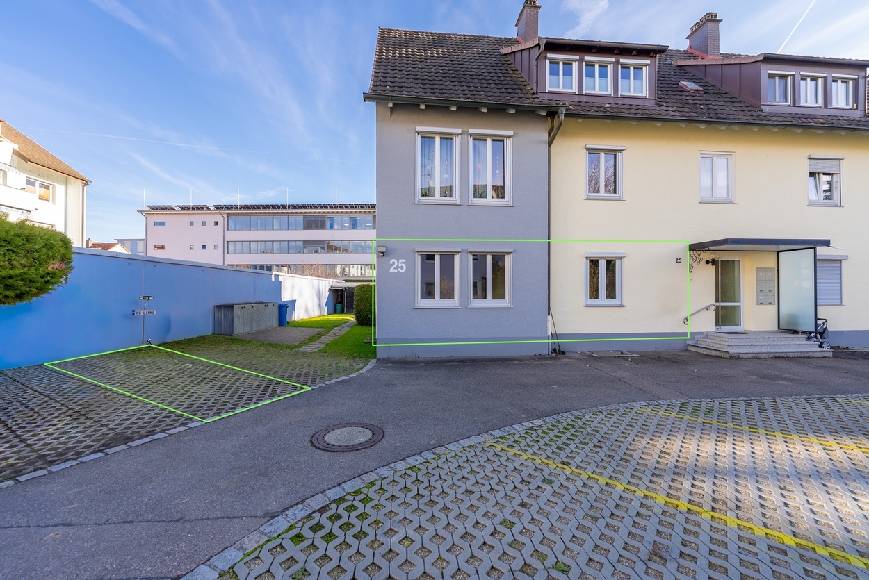 Diese kompakte Wohneinheit befindet sich in einem kleinen, ruhigen Mehrparteienhaus und bietet eine seltene Kombination aus Stadtnähe und geschütztem Grünbereich. Die Wohnung liegt im Erdgeschoss, verfügt über drei gut nutzbare Zimmer sowie eine überdachte Terrasse mit Blick in den begrünten Innenhof – eine echte Oase mitten in Rheinfelden. Ein Stellplatz im Hof ist der Wohnung zugeordnet. Die Gastherme (Baujahr ca. 2000) wird ausschließlich für diese Einheit betrieben, sodass die Eigentümer in ihrer Energieversorgung weitgehend autonom sind.