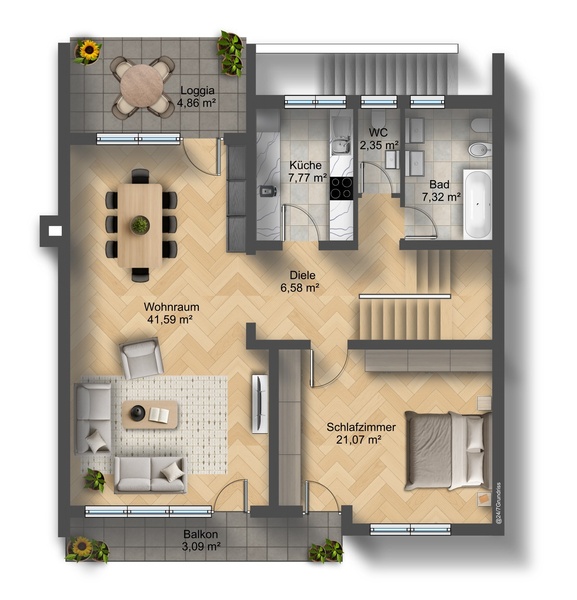 | Nutzfläche | 61 qm |