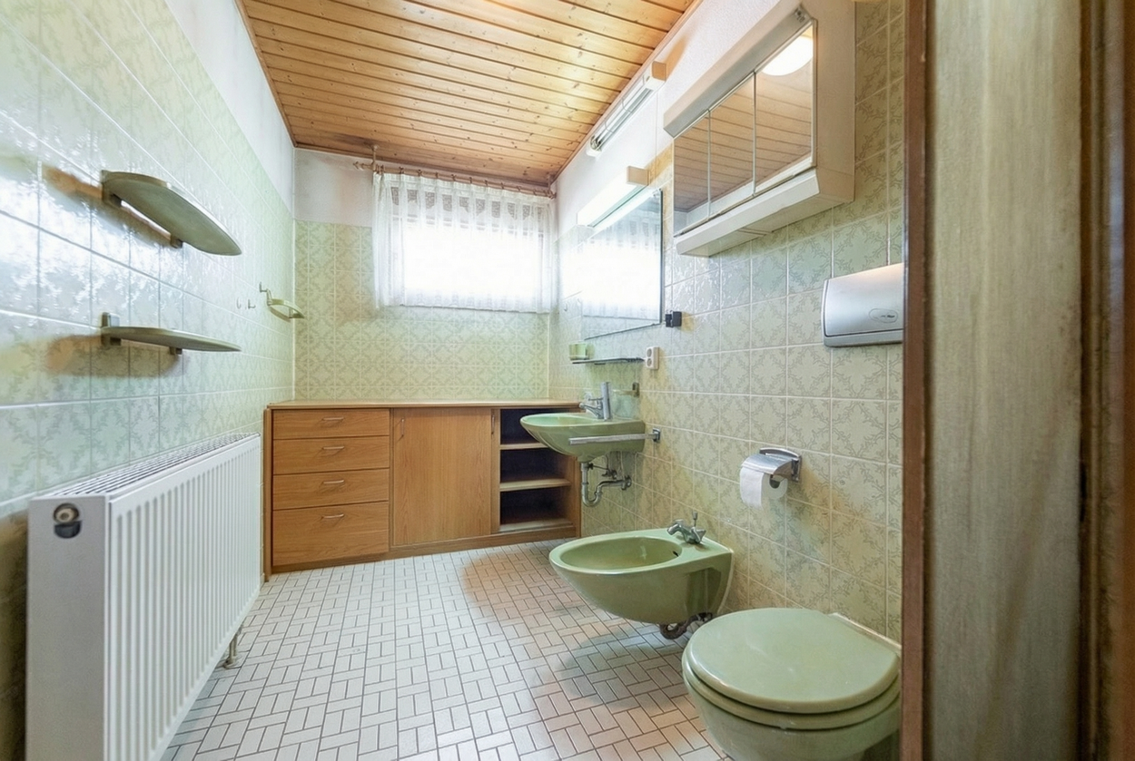 Das Gebäude befindet sich insgesamt in einem sanierungsbedürftigen Zustand, sodass zukünftige Eigentümer die Möglichkeit haben, das Haus nach eigenen Vorstellungen zu modernisieren und zu neuem Leben zu erwecken.