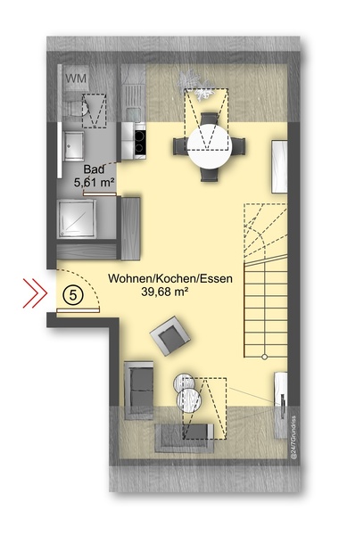 Diese 🏡 Studiowohnung im Dachgeschoss erstreckt sich über zwei Etagen und ist sofort verfügbar ⏱️. Sie liegt am Ortsrand 🌳 von Steinen-Weitenau und bietet eine ruhige Wohnatmosphäre.
